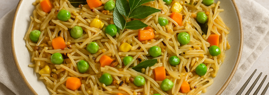 Some mornings call for something warm, light, and fuss-free — and that’s when semiya upma comes to the rescue. I grew up watching my mother toss handfuls of roasted vermicelli into a kadhai while onions sizzled gently in ghee. She’d add whatever vegetables were at hand — carrots, peas, beans — and somehow, in under 15 minutes, breakfast was ready.