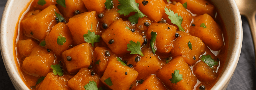 For a pure satvik or temple version, skip garlic entirely. The Dalma is cooked slowly in an earthen pot or heavy-bottomed pan. In place of the usual tempering, you simply stir in fresh grated coconut at the end along with the ghee. Pinch of Masala notes that temple Dalma is “slow-cooked… No onion or garlic — satvik simplicity is key” and that one should “add freshly grated coconut to dalma… for richness”. The result is a light, creamy curry laced with coconut’s sweetness – solemn and sacred, perfect for puja offerings or fast days.