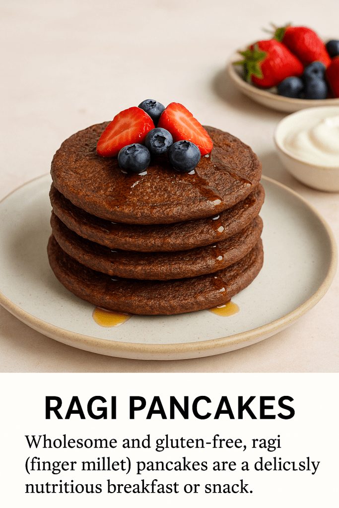 Whether you choose the sweet banana version or the spiced vegetable version, these Ragi Pancakes are a warm, wholesome way to start the day. Packed with whole-grain goodness and flavor, they’re sure to become a favorite healthy breakfast or snack in your home. Enjoy!