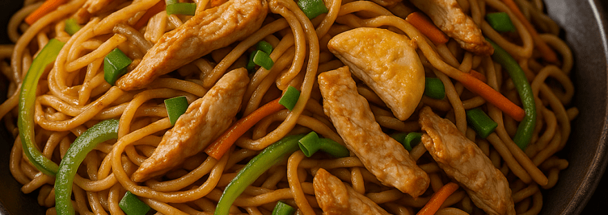 Chicken: Thinly slice about 100–150 g of chicken (breast or thigh) into bite-size pieces. Stir-fry the chicken in 1 teaspoon of oil before adding the garlic and veggies, or along with the onions, until it’s cooked through (it will turn white and lightly golden at edges). Remove and set aside, or push to the side of the wok, then proceed with the recipe. Combine the cooked chicken back in when tossing the noodles. Tip: Marinating the chicken with a bit of soy sauce and ginger-garlic paste for 10 minutes beforehand adds extra flavor. (If using other meats or prawns, similarly cook them first on high heat; ideally, add any meat while stir-frying the veggies so it gets properly cooked before the noodles go in.)